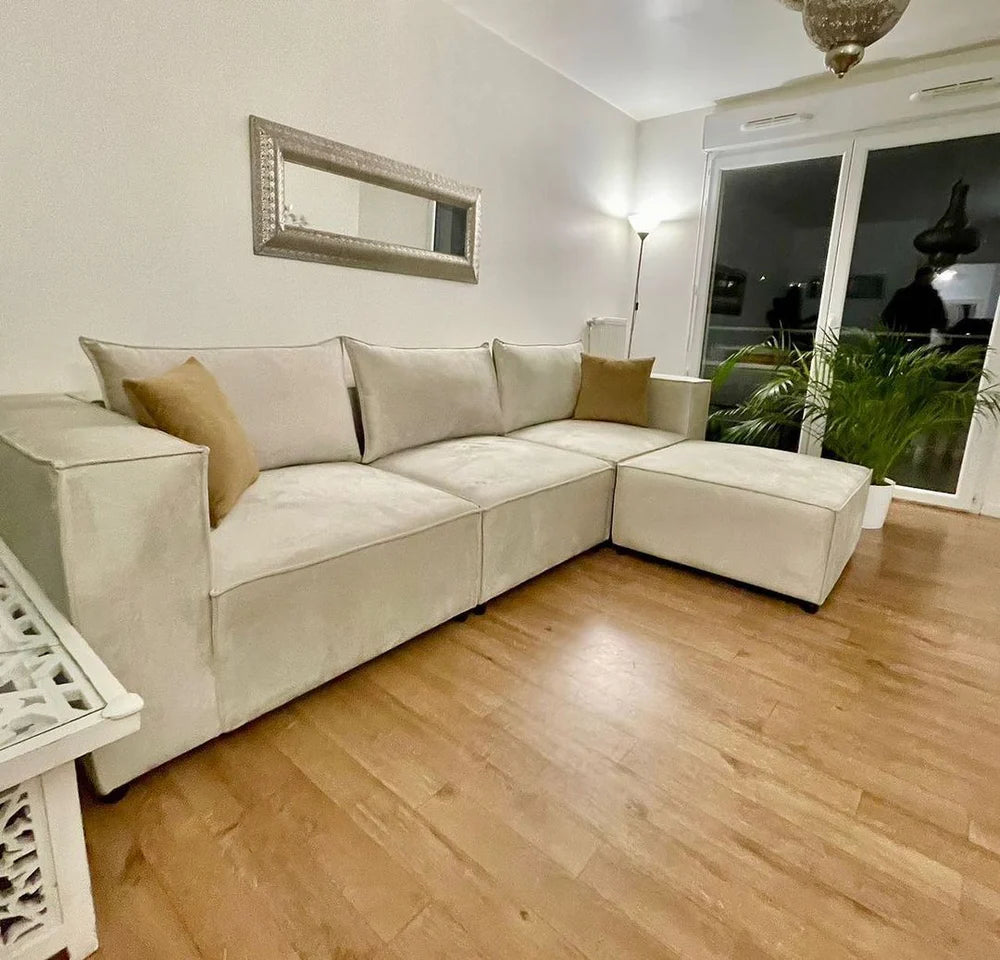 - Modulable : Ajustez facilement la configuration du canapé pour s'adapter à votre espace et à vos besoins.