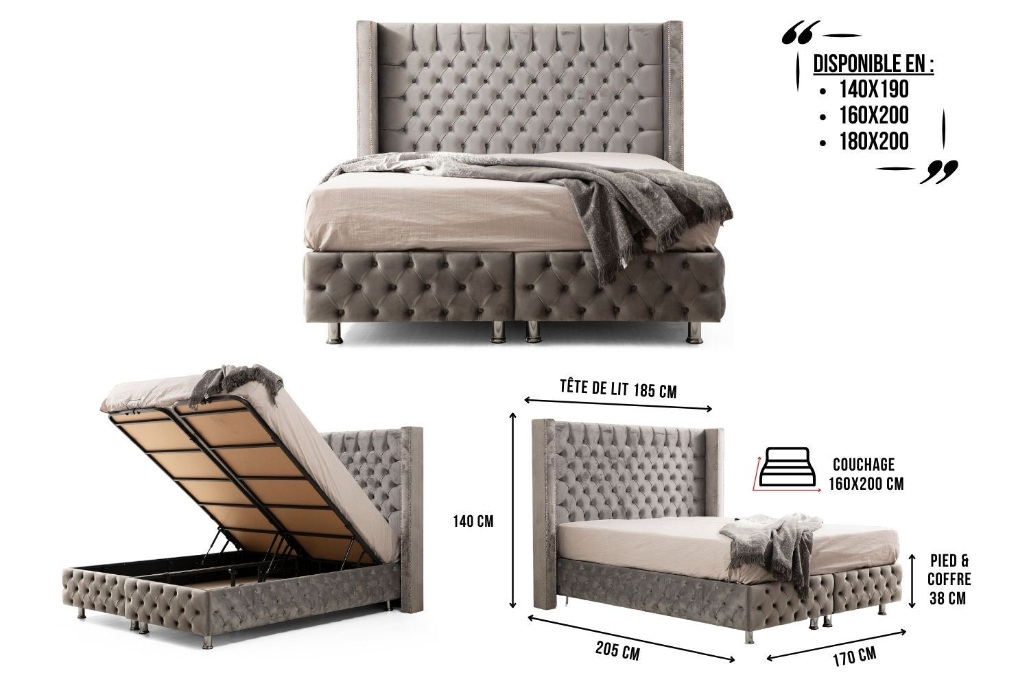 ✓ Fonction : Lit coffre relevable avec espace de rangement