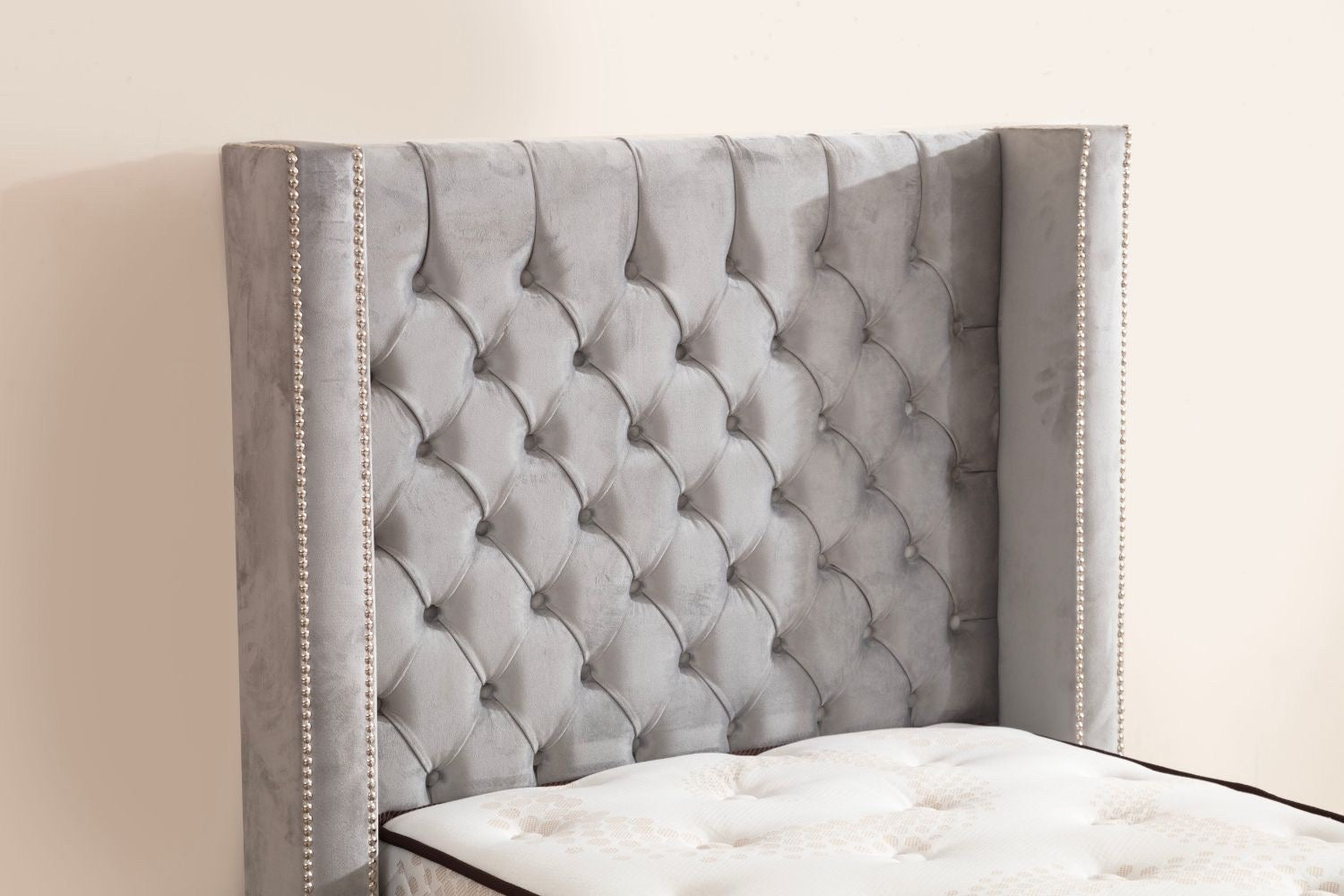 Sa tête de lit capitonnée avec son revêtement de velours ultra doux lui donne un côté chaleureux, chic et cosy.