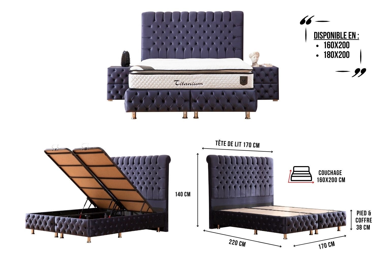 ✓ Matériaux : Caisson en métal, panneaux agglomérés, mousse HR, velours