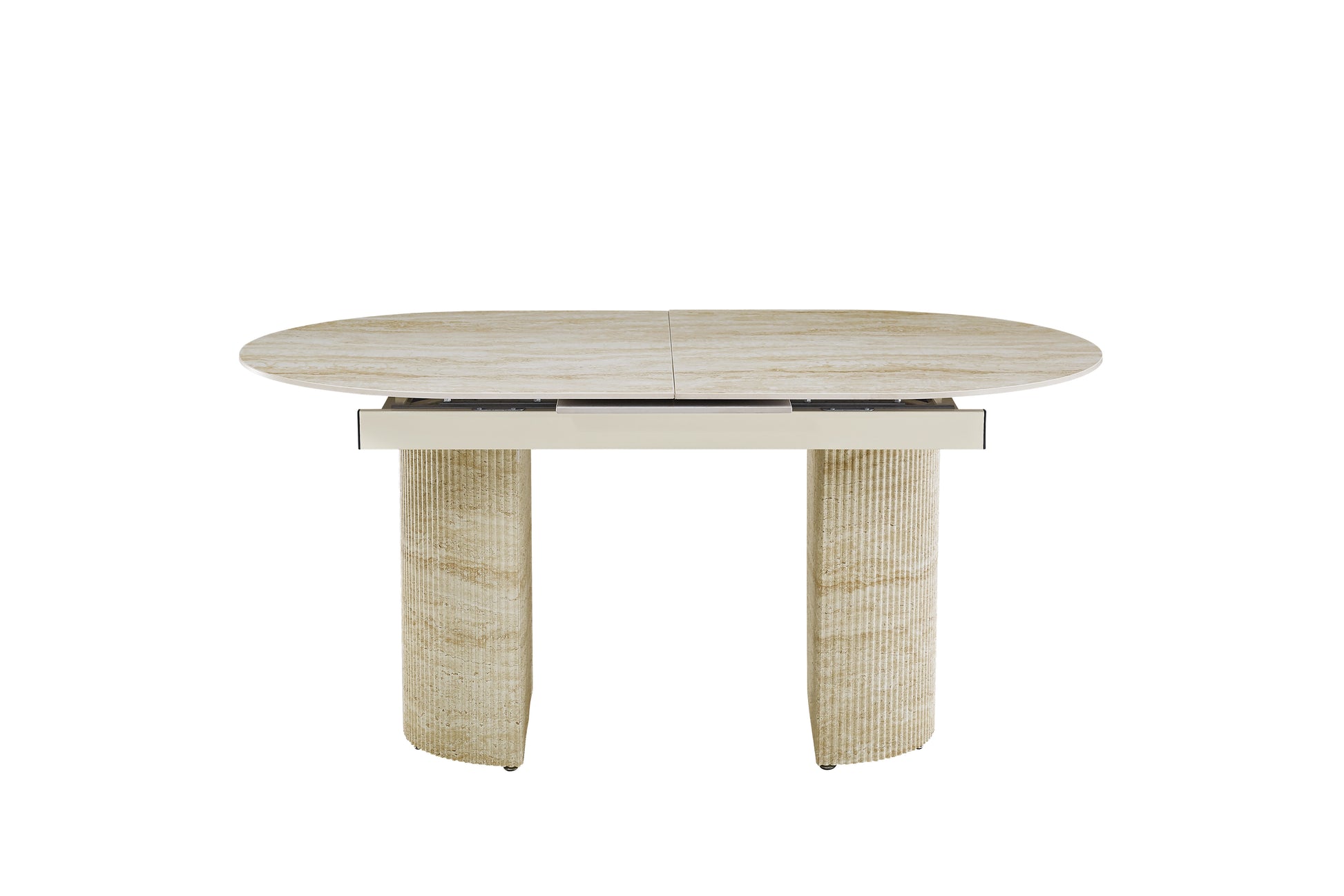 TABLE EXTENSIBLE SAHARA PIED EFFET TRAVERTIN PLATEAU CERAMIQUE TRAVERTIN BRILLANT 160/200x90x75cm