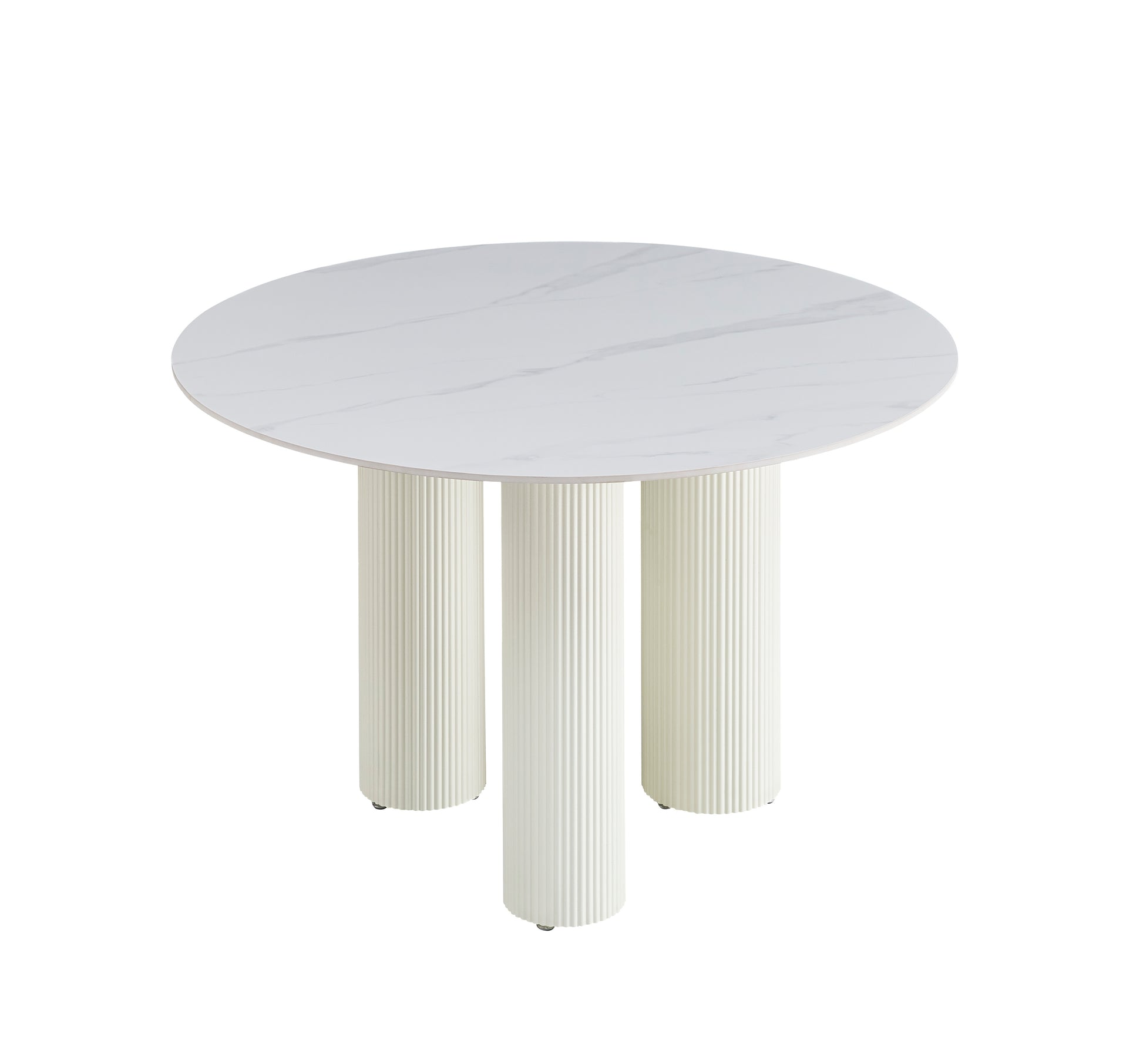 TABLE REPAS ANAÏS PIEDS BEIGE PLATEAU CERAMIQUE MARBRE BLANC 120CM