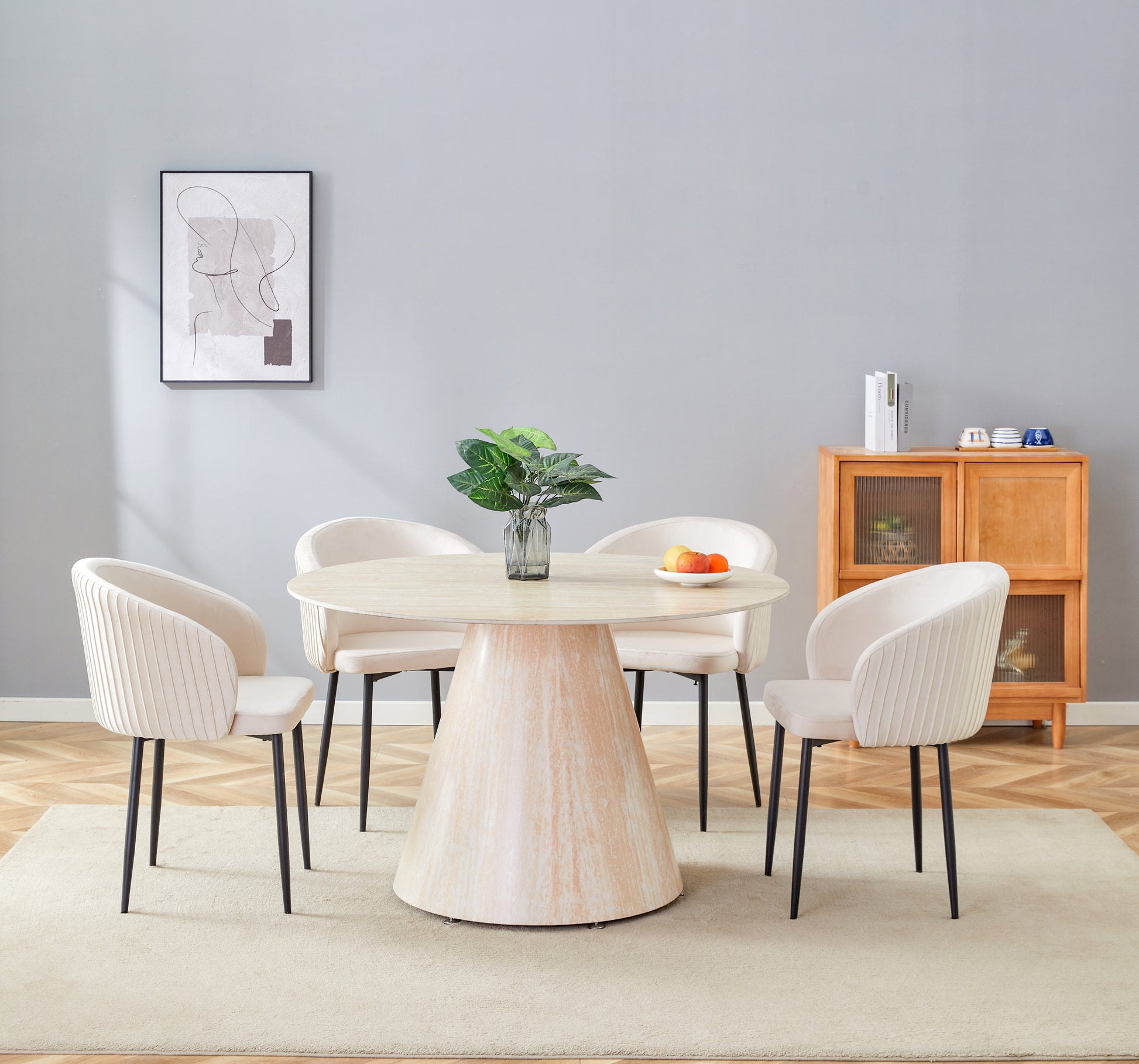 TABLE REPAS ROSALIA PIED EFFET TRAVERTIN CERAMIQUE TRAVERTIN